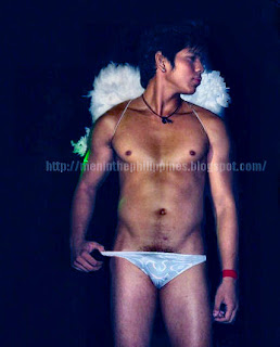 That’s Mark Cortez as an angel in a bikini. He’s appeared before in rather raunchy underwear shows, foremost of which was the Glamour Boys 2007 search in Lips Bar [Aurora Blvd, San Juan, M.M.], where he was a weekly winner and a finalist. Too, it wasn’t a bikini contest, as the contestants didn’t have to wear bikinis. Mark is known also for his Prince Albert or beading implants.