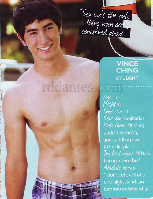 Vince Ching = is 17 (gasp!), from Ayala Alabang Viilage, and studied in the International School Manila. Beats me why he has to be there – it’s probably from the strings of STAGES and Carlo Orosa.